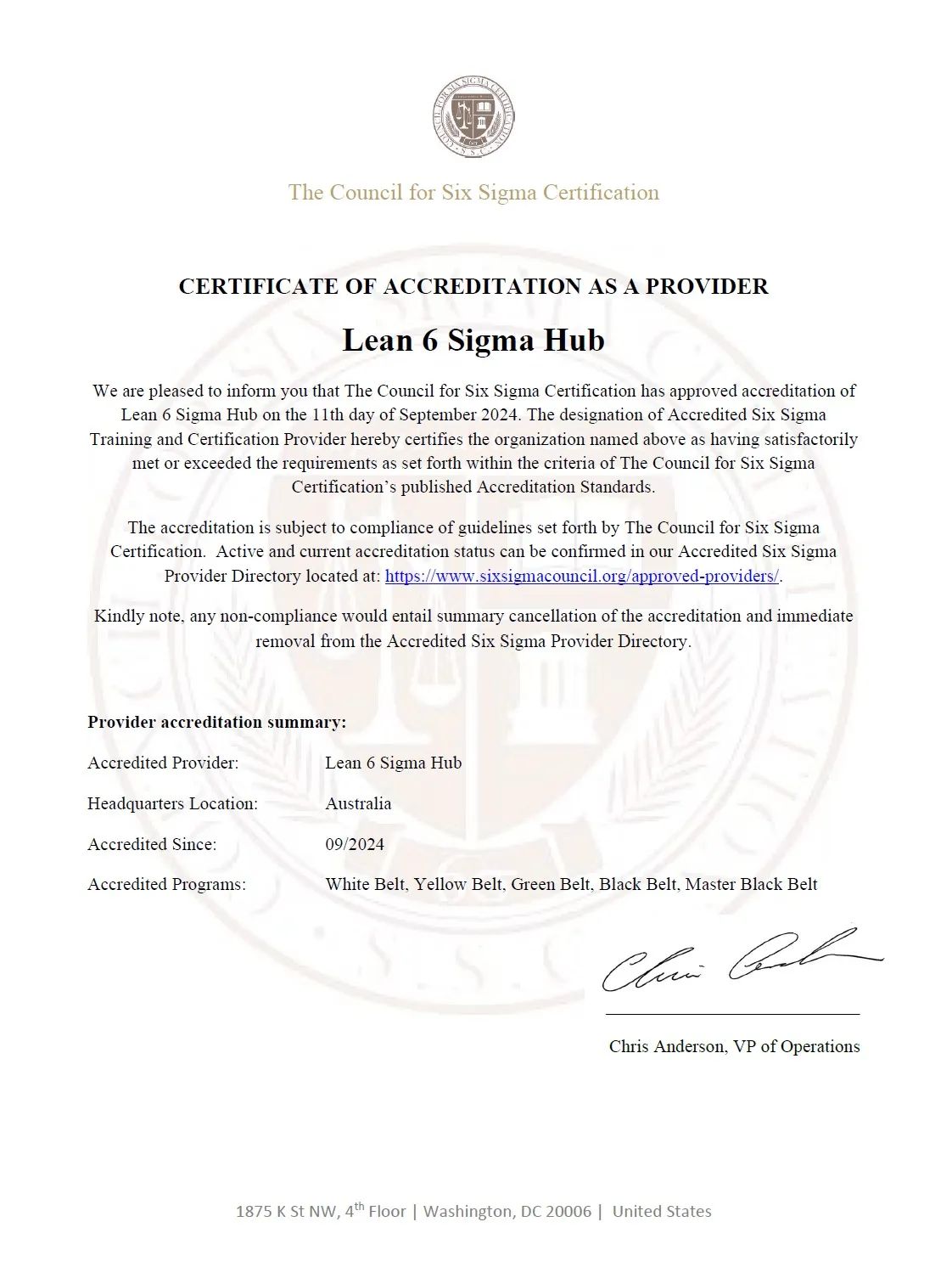Lean 6 Sigma Hub is officially accredited by the Council for Six Sigma Certification (CSSC), USA. Our training programs align with the Body of Knowledge prescribed by the CSSC, ensuring globally recognized standards in Lean Six Sigma education.