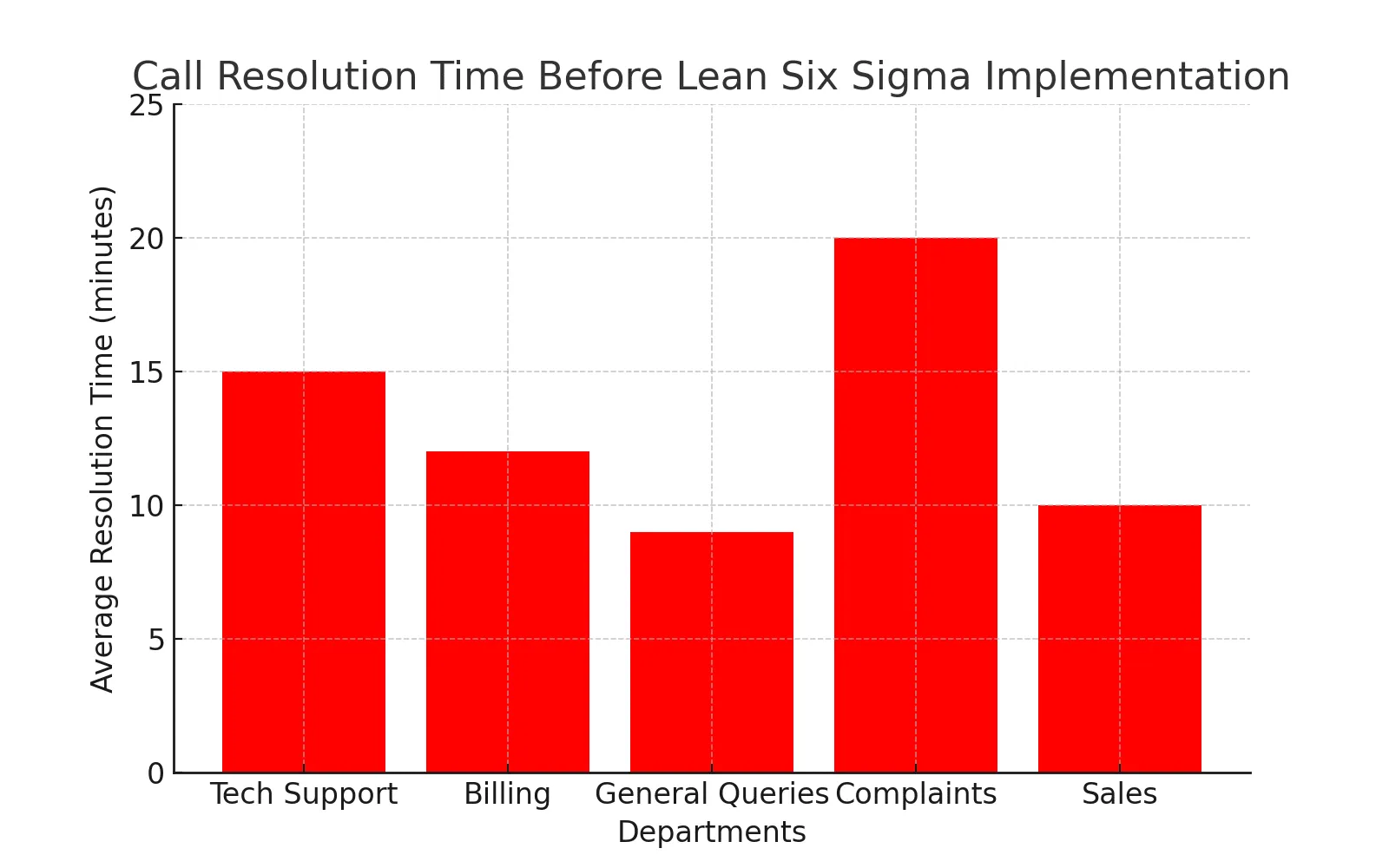 The call resolution time before implementing Lean Six Sigma was significantly high, as shown below: