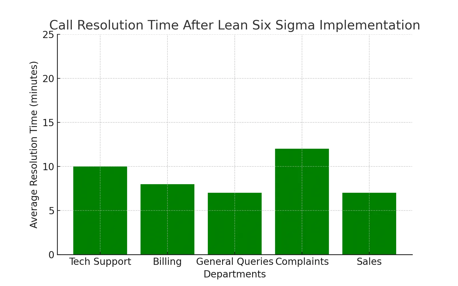 After implementing Lean Six Sigma improvements, call resolution times significantly reduced: