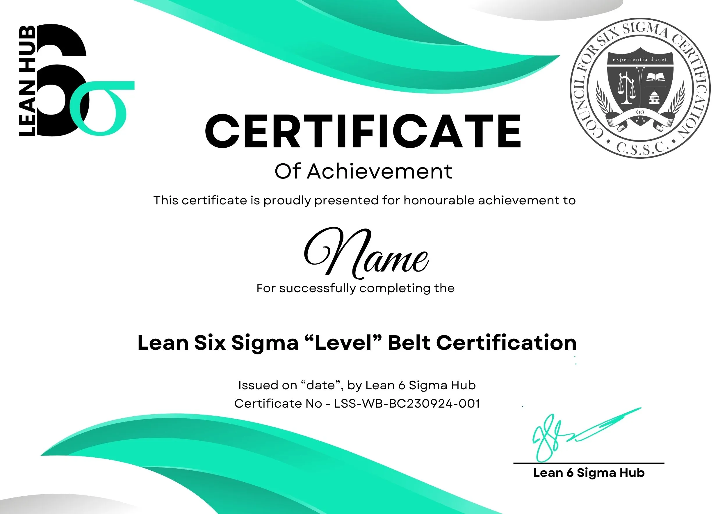 At Lean6SigmaHub, we are proud to be accredited by the Council for Six Sigma Certification (CSSC), an internationally recognised and trusted accreditation body for Lean Six Sigma training programs. This accreditation ensures that our courses meet the highest industry standards, providing you with certifications that are valued by employers around the world.